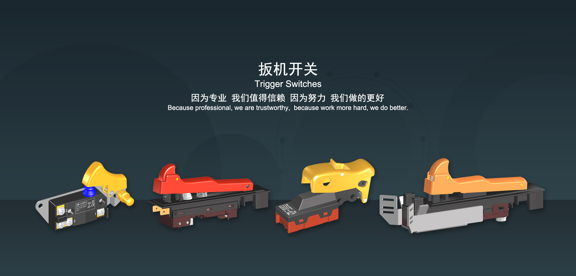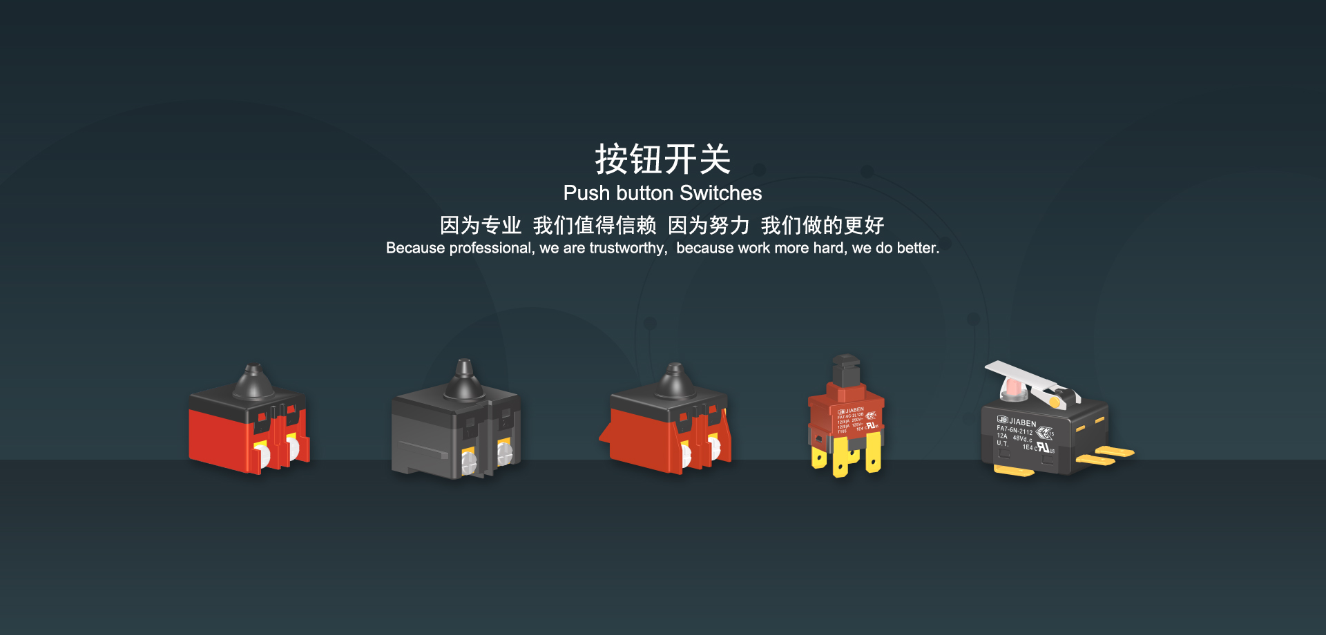 浙江佳奔電子有限公司始建于1986年,坐落于浙江省樂清市虹橋鎮(zhèn)東電子信息產(chǎn)業(yè)園內(nèi),現(xiàn)有職工700多人,資產(chǎn)總額超3億元。公司主要經(jīng)營“JIABEN”牌微動開關、蹺板開關、按鈕開關、扳機開關、調(diào)速開關和電位器開關等各類交、直流器具開關和各類交、直流線路板模塊等產(chǎn)品,主要應用于交、直流電動工具、電動園林工具、清潔器具、家用電器和小型機床等行業(yè),是集產(chǎn)品設計、研發(fā)、制造、銷售和服務于一體的國家高新技術企業(yè)。JIABEN was founded in 1986, located in East Electronic Information Industry Park, Hongqiao Town, Yueqing City, Zhejiang Proviance, existing staff more than 700 peoples, more than 300 million RMB worth of assets. Company is mainly engaged in "JIABEN" brand Micro Switch, Rocker Switch, Push-button Switch, Trigger Switch, Speed Regulating Switch, Potentiometer Switch and other kinds of appliance switch and all kinds of AC or DC circuit board module, such as more than 100 series, 8000 kinds of models of products, mainly used in AC or DC Power-tools, Power Gardening Tools, Cleaning Appliances, Household Appliances and Small Machine Tool and other industries, is the collection product design, research and development, manufacturing, sales and service in one of the national high and new technology enterprise.